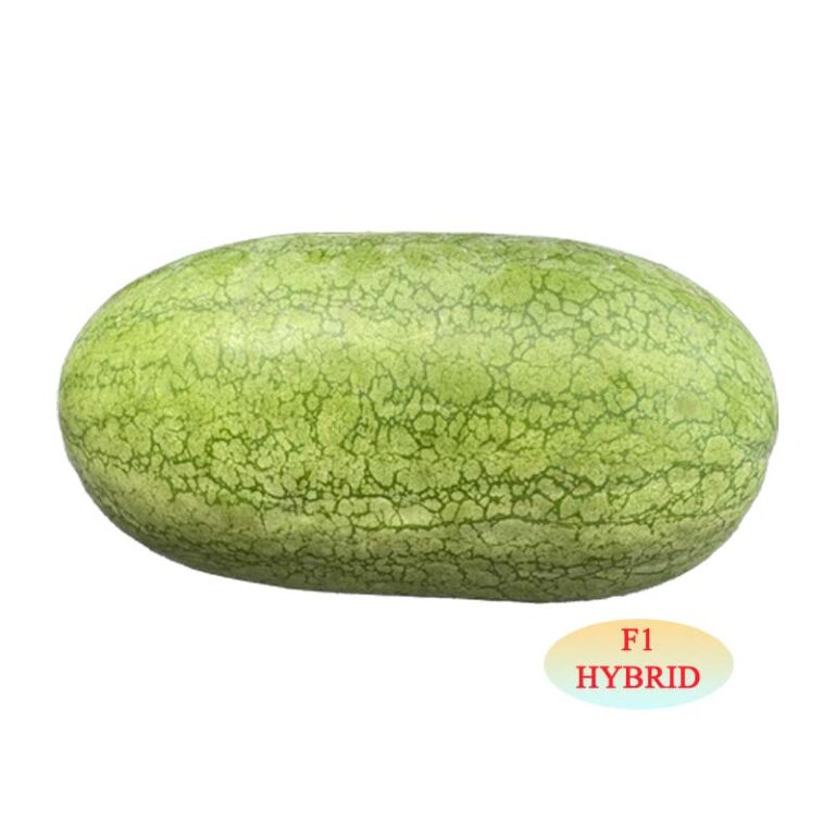 Oblong fruits with light green rind and narrow green stripes, deep yellow flesh, firm, crisp, and sweet. Strong, vigorous vines.